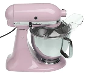 In support of a cure for breast cancer, pink is a wonderful color for the celebrity appliance in your kitchen! When you purchase this great appliance, KitchenAid will donate fifty dollars to The Susan G. Komen Breast Cancer Foundation. Cook for the Cure! More is more sometimes, at least in the world of small appliances. and such is the case with the KitchenAid Artisan mixer. It has a tilting head, like the KSM90, but it has a larger 5 qt. capacity bowl. It also gives you more oomph, as in 325 watts of cookie dough busting power. What's not to love? If you've been considering a stand mixer, this may be the perfect "starter model" for you.